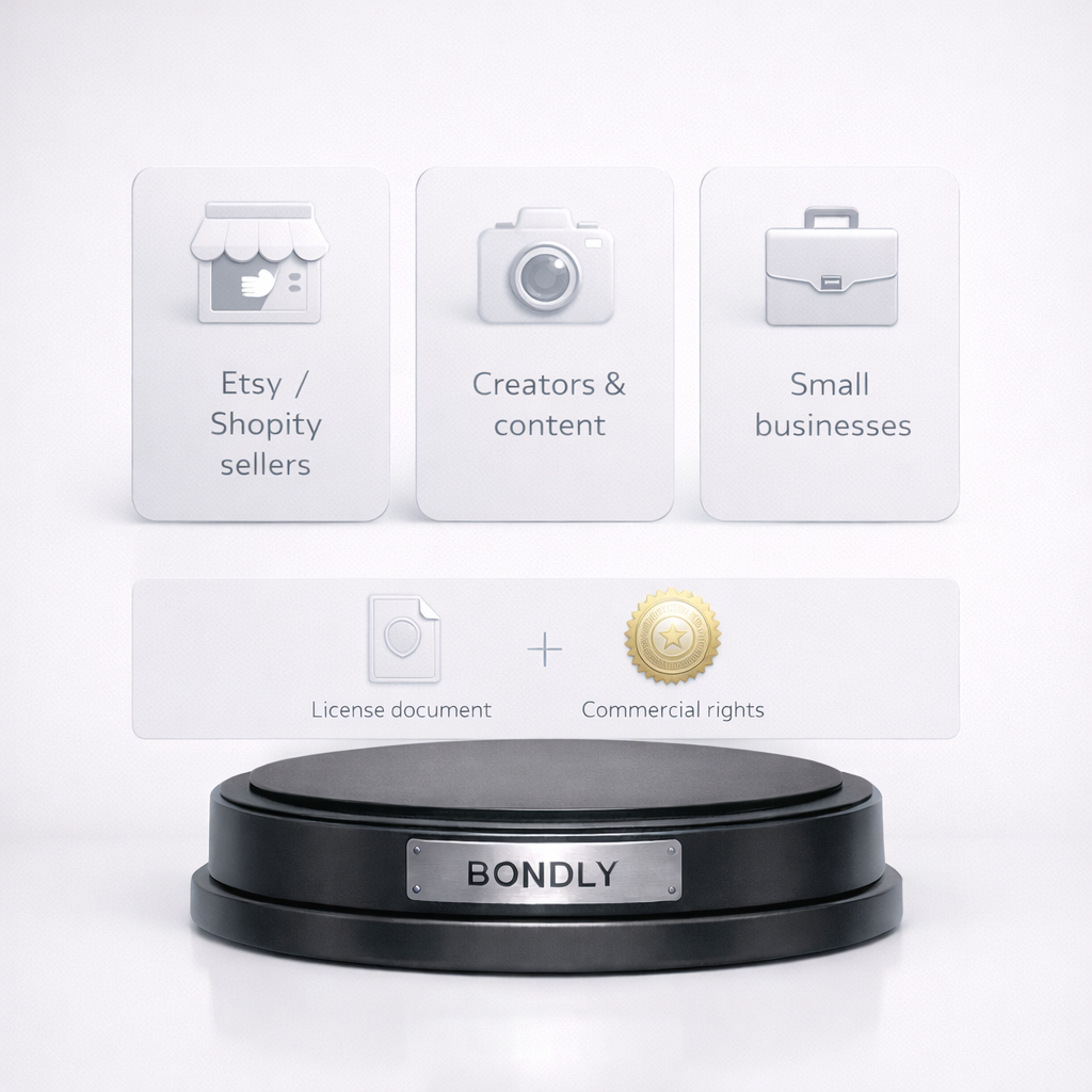 Kommerzielle Nutzungsrechte für Ihr 3D-Modell (Marketing/Inhalte/geschäftliche Nutzung). Die private Nutzung ist standardmäßig enthalten; dieses Add-on erweitert Ihre Lizenz.
